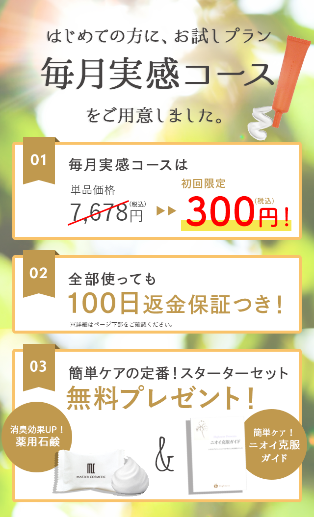 他のクリームに比べたらお安いのですが、市販のものと比べるとやっぱり高い・・・。 でもそれだけいい成分が入っているのだと思います。つんとくる汗のにおいがいくら嗅いでもありません。定期だとちょっと安いので定期購入しようか悩み中です。
